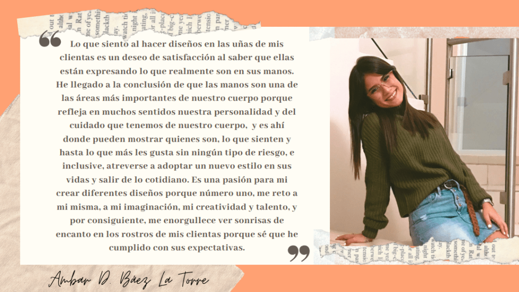 Adjunto las expresiones de Ambar D. Báez La Torre (joven emprendedora, especializada en tecnología de uñas)